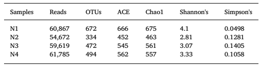 表1.基于Illumina测序的16S rRNA基因扩增子的物种丰富度和多样性分析。