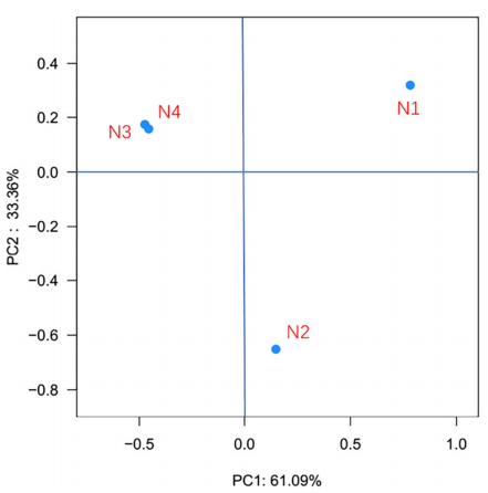 图5显示了四种SBR中细菌群落的分离群落。四个样本被分散到三个不同的群落中:N3和N4分布在一起,但与N1和N2的群落相距较远。结果表明,SBR处理未经E-peroxone预处理(N2)的细菌群落与对照(N1)中微生物群落的起源有很大差异,而E-peroxone预处理后CIP降解的转化产物(TP)仍然对细菌群落有显着影响(比较N3,N4与N1)。