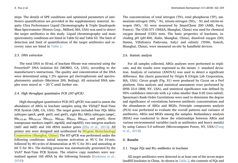 华东师范大学谢冰教授在Environment International发表文章:Fluoroquinolones and β-lactam antibiotics and antibiotic resistance genes in autumn leachates of seven major municipal solid waste landfills in China
